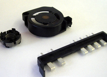 金型内にインサート品(主に金属端子)を装填して樹脂を充填することにより、一体化した複合部品を作る工法です。複数のインサ-ト品を同時に装填することで、複雑・緻密な一体成形品を得ることが出来ます。当社は、高い技術力とノウハウを持つ、樹脂インサート成形品の会社です。